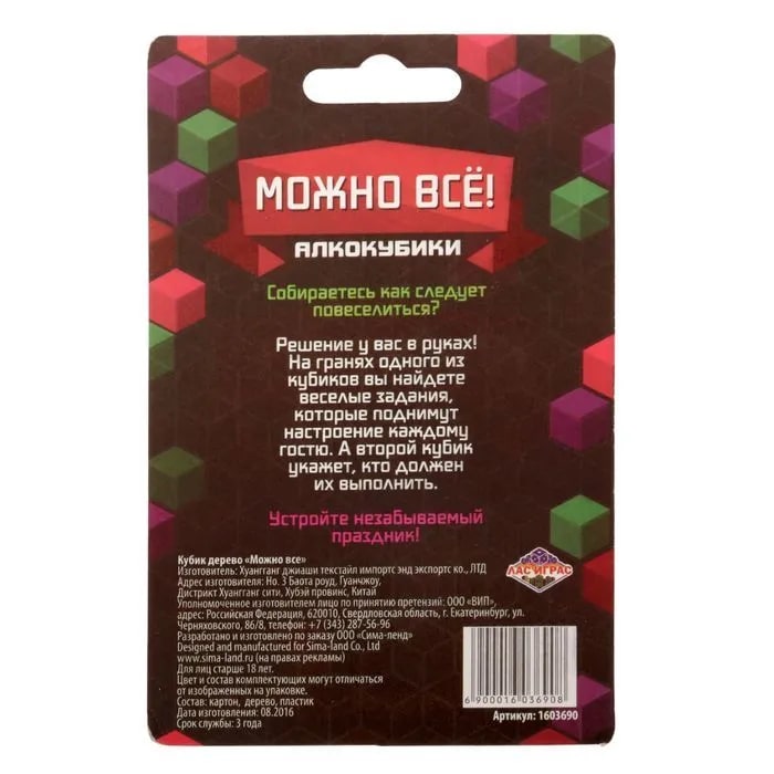 Купить кубик "можно все", алкокубики для принятия решений от 60 руб. с доставкой до пункта выдачи в Карачеве. Интернет магазин ДекаМаркет. Оплата при получении.